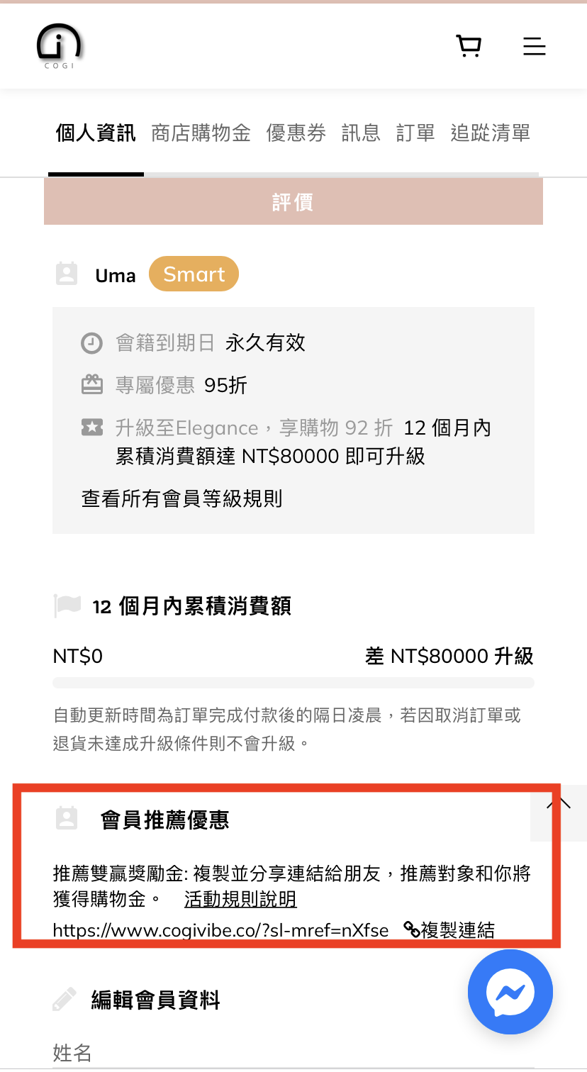 透過你的專屬連結分享 COGI 給姐妹、同事、親友們,