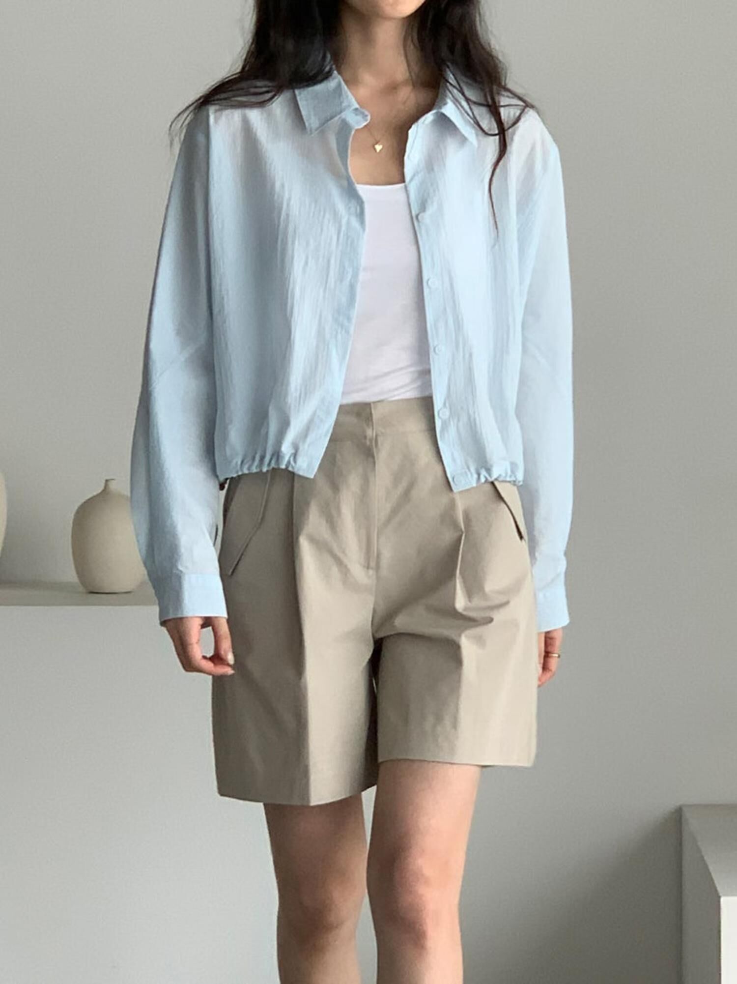BariBari "新品" Draw Cord Hem Shirt (Blue, Ivory, Beige, Black)