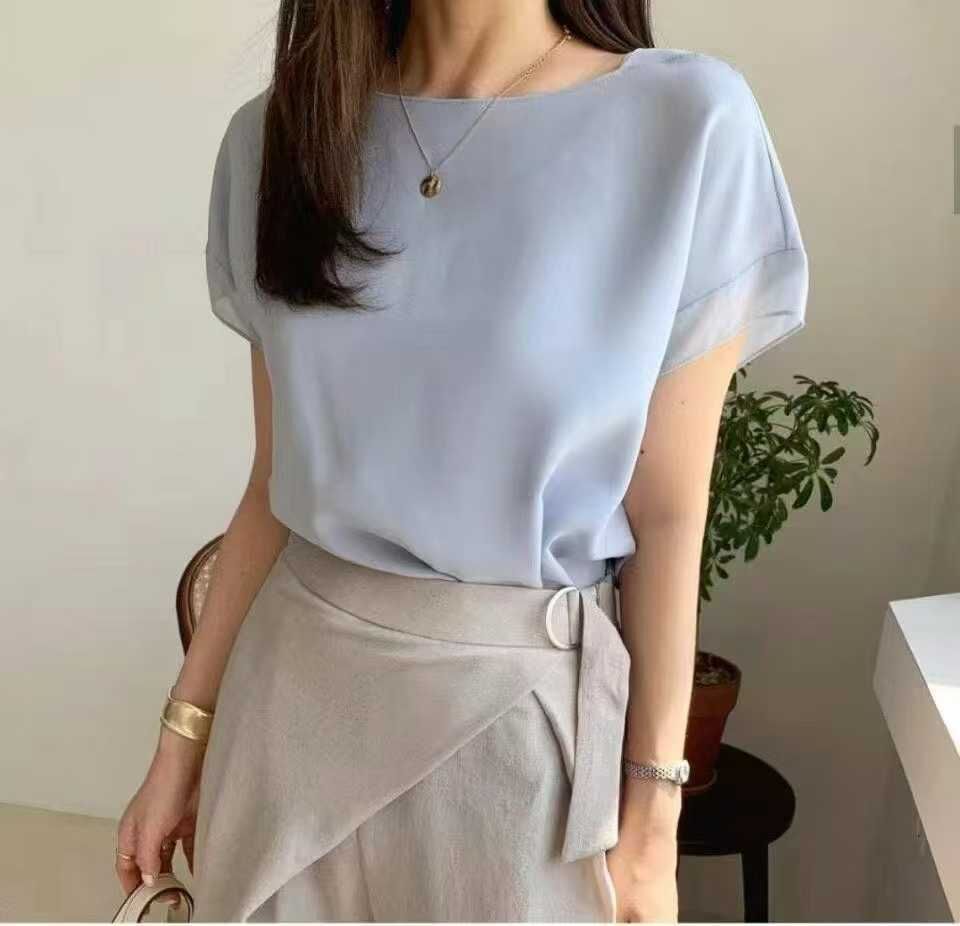 daily project "新品" Round Neck Blouse (Blue, Beige, White)
