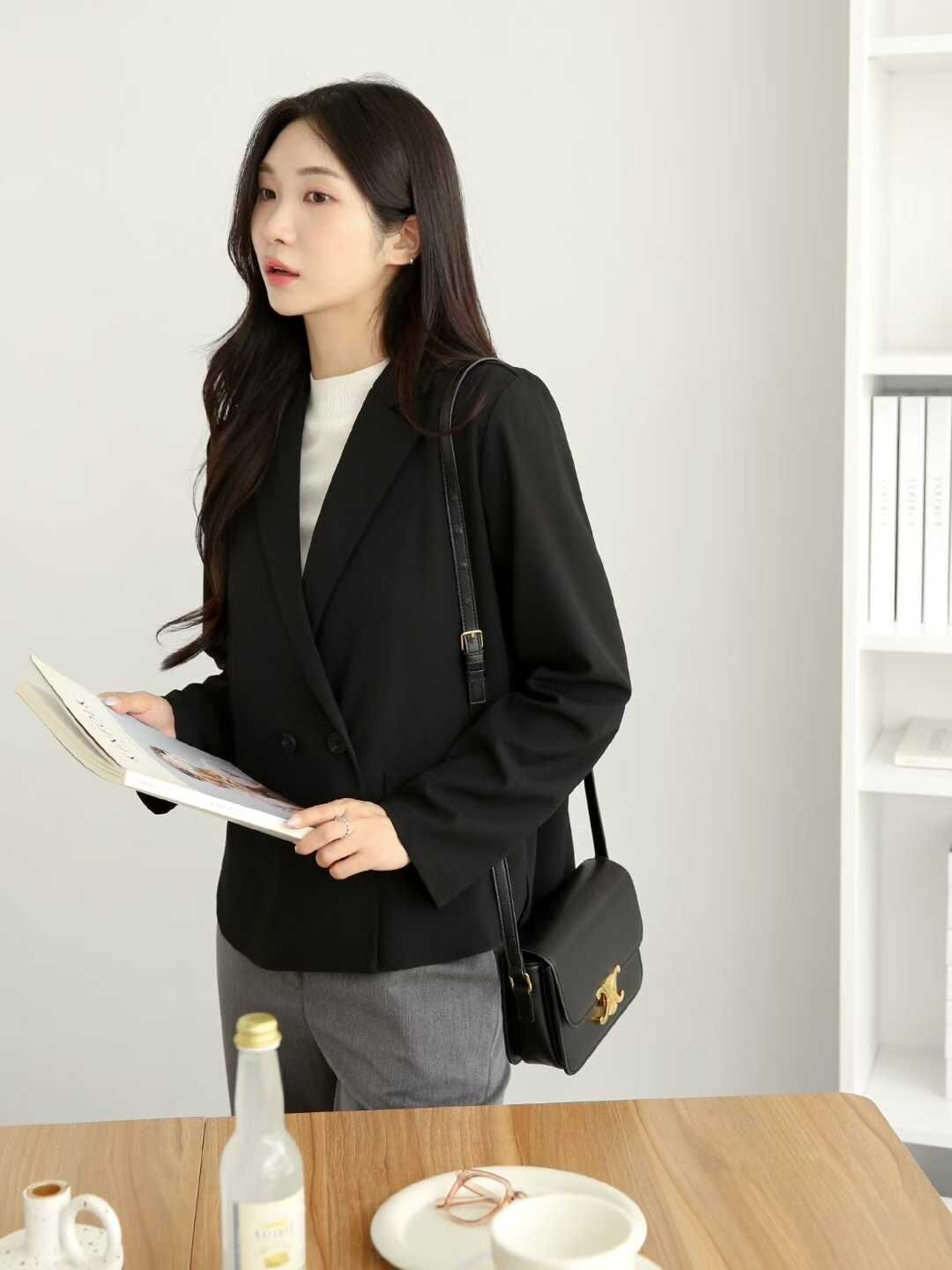 daily project "新品" Overlap Collar Blazer (Black, Beige, Brown)