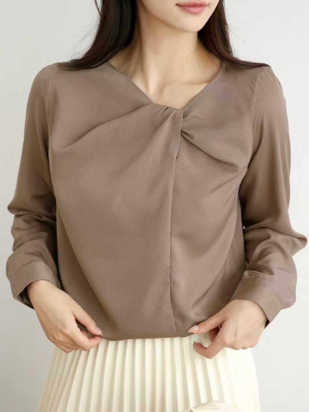 daily project "新品" Overlay Collar Top (Brown, White, Beige)