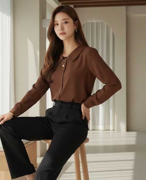 daily project "新品" Curve Point Collar Shirt (Brown, White, Blue)