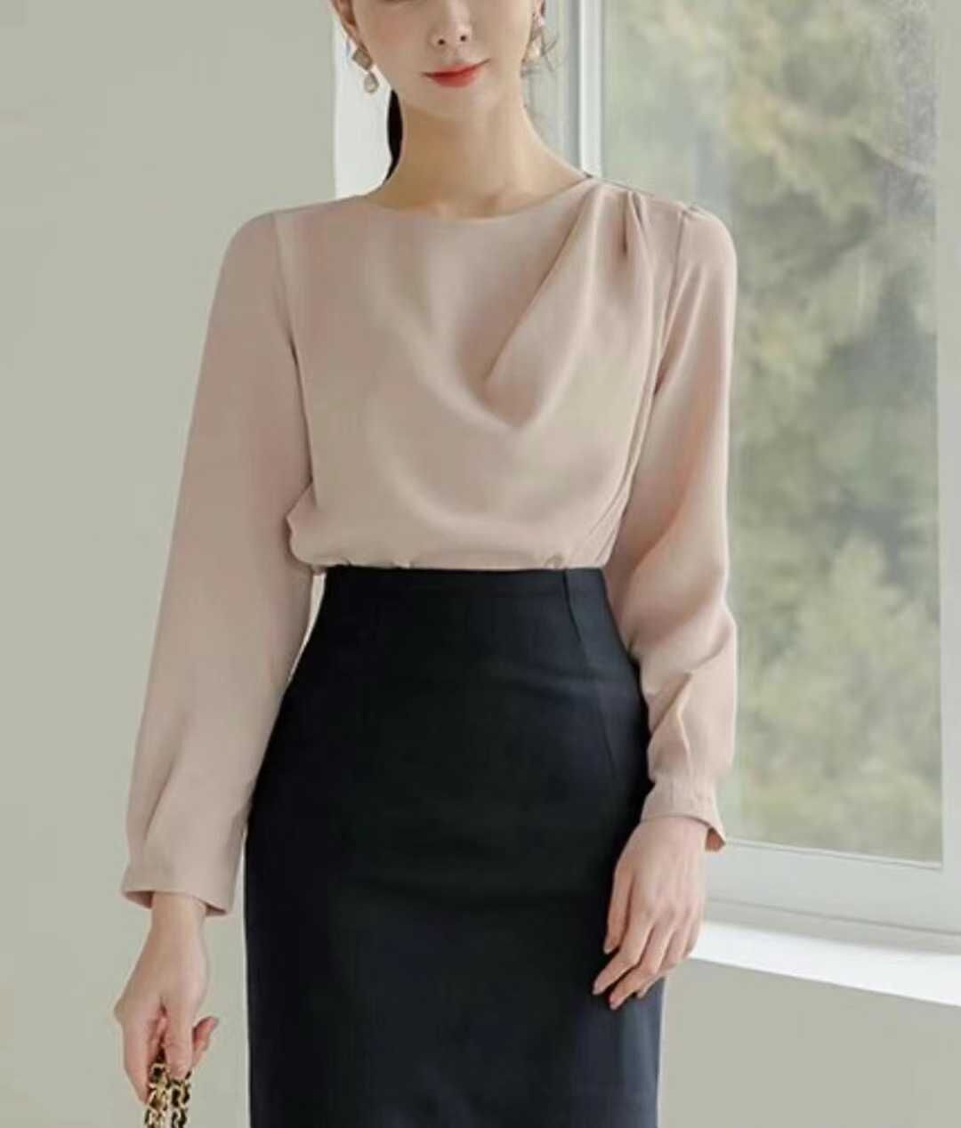 daily project "新品" Pleated Shoulder Blouse (Beige, Light Khaki Grey, Ivory)