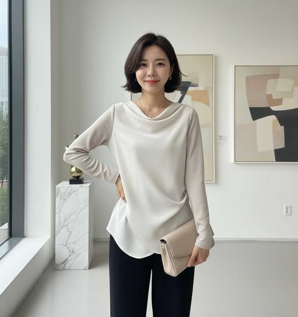 daily project "新品" Loose Collar Top (Ivory, Mocha)