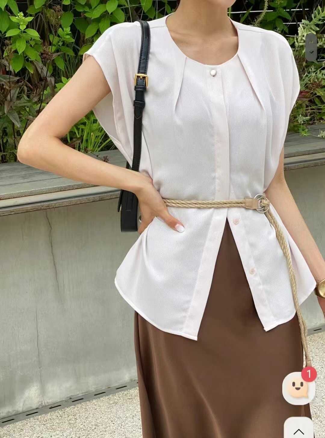 daily project "新品" Cropped Sleeve Button Shirt (White/Sora)