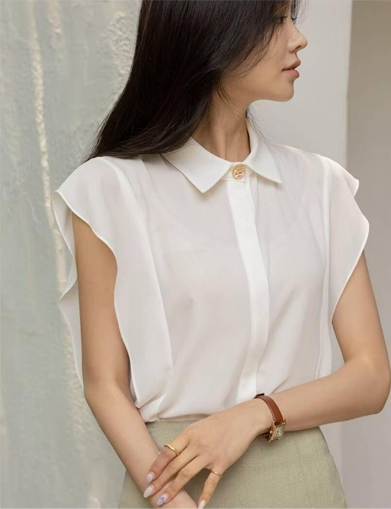 Gunny "新品"Wavy Collar Blouse (White, Yellow, Blue)