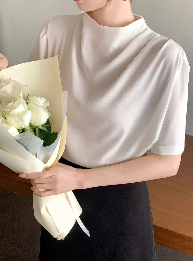 Gunny "新品"Mid Neck Blouse (Beige, Ivory, Sky Blue, Black)