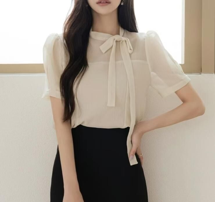 Gunny "新品"Neck Tie S/S Top (Ivory, Biege, Pink)