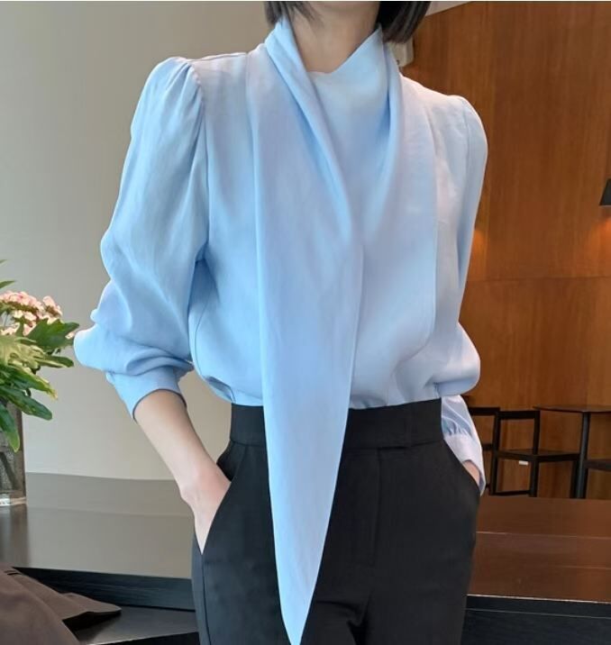 Gunny "新品"Overlap Tie Blouse (Blue, Pink, White)