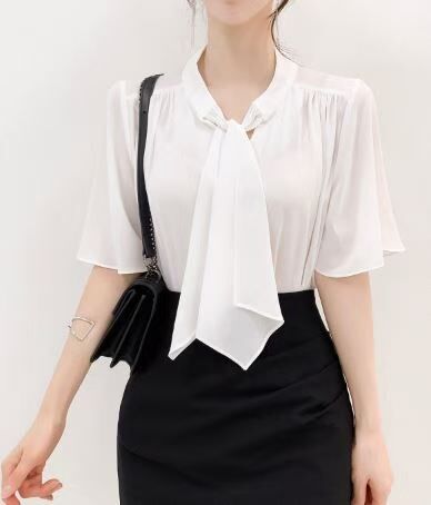 OPN "新品" Front Tie S/S Blouse (White, Black, Beige)