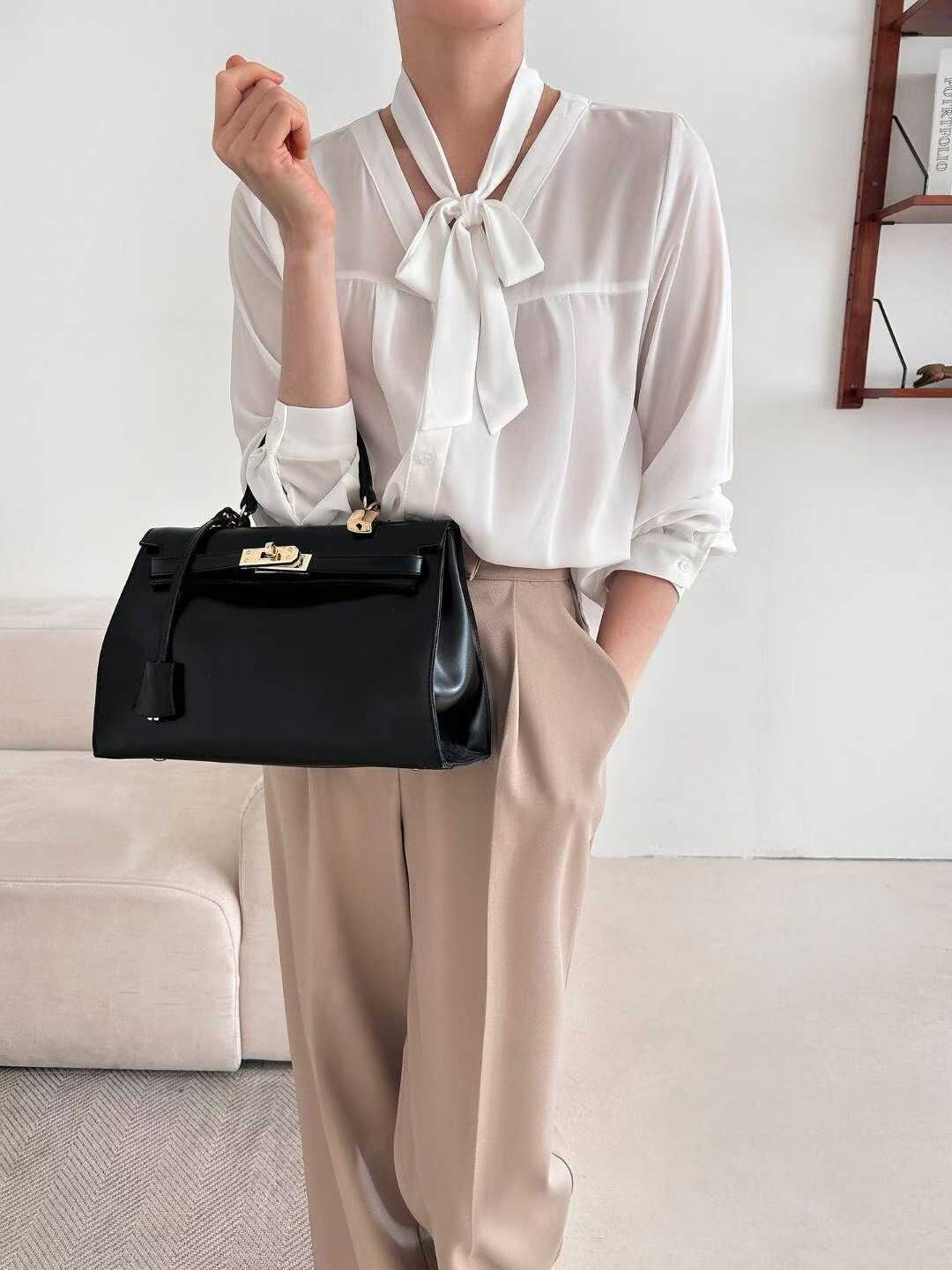 OPN "新品" Open V-Neck Blouse ( White, Black)
