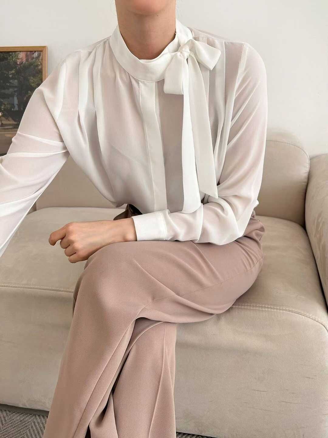 OPN "新品" Open pin tuck tie Top (White, Black)