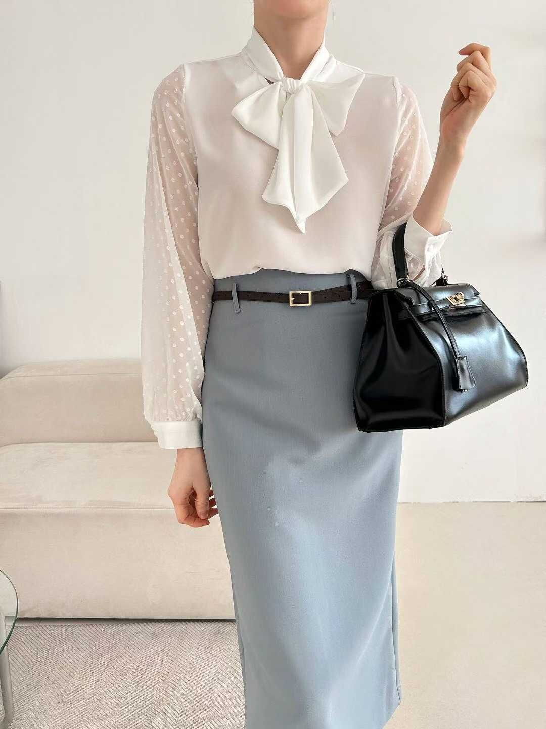 OPN "新品" Polka Chiffon Sleeve Top (White, Black)