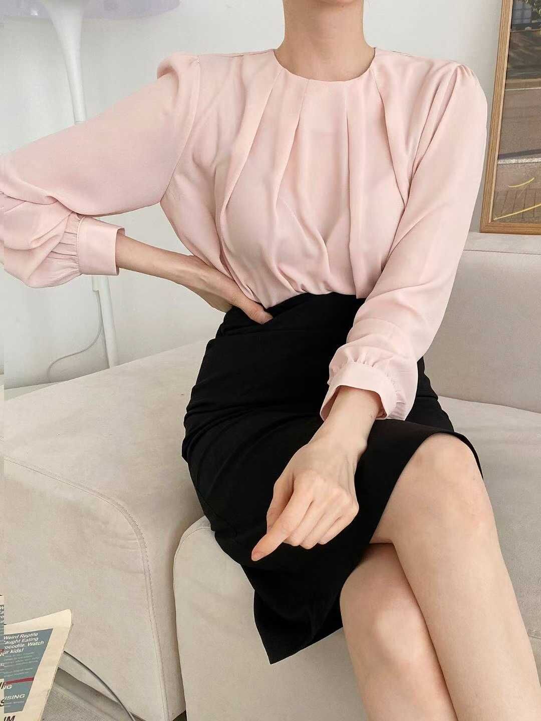 OPN "新品" L/S Pleats Blouse (Pink, Beige, White, Black)
