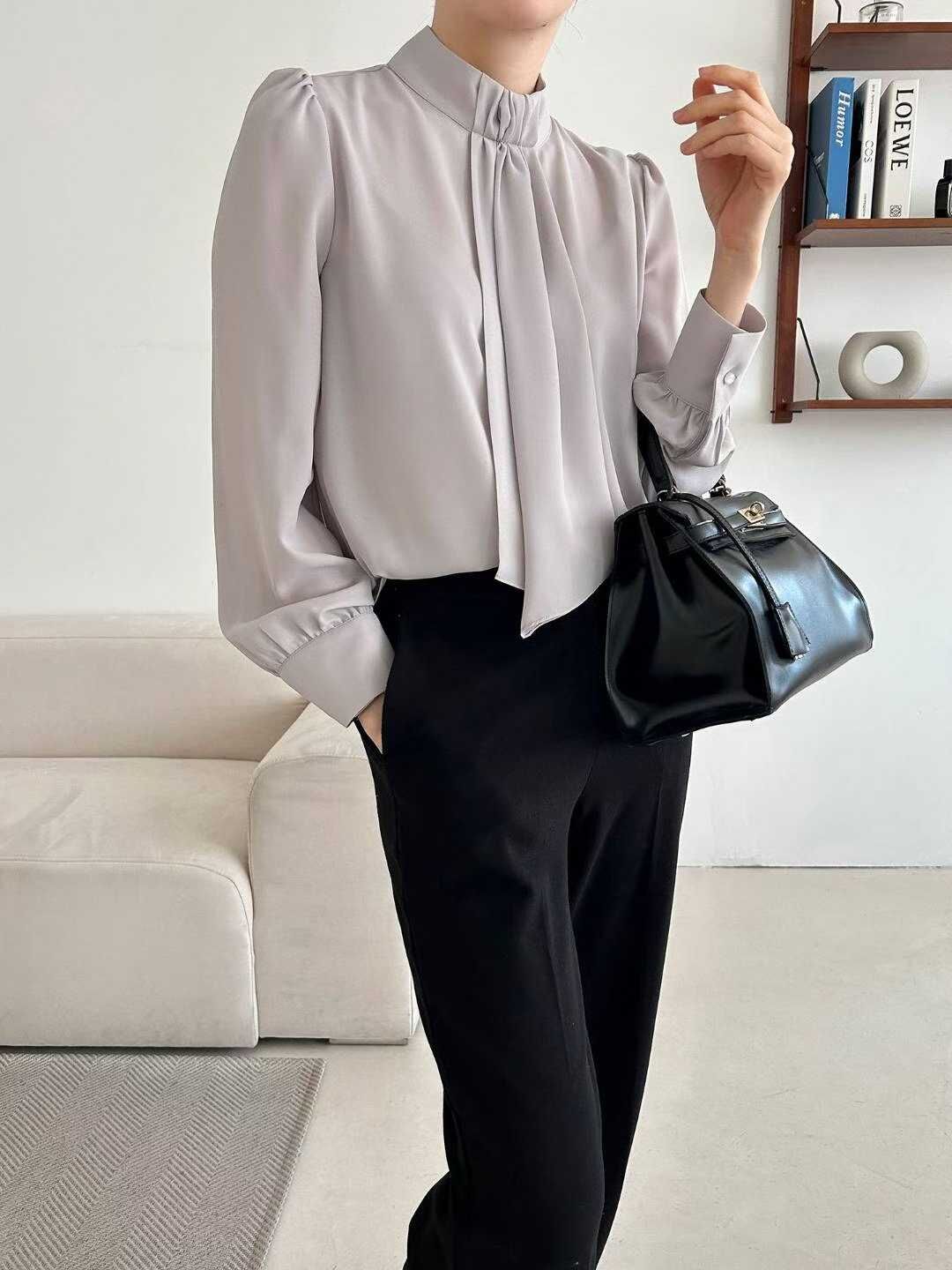 OPN "新品" High Neck Tie Blouse (Grey, White, Black)