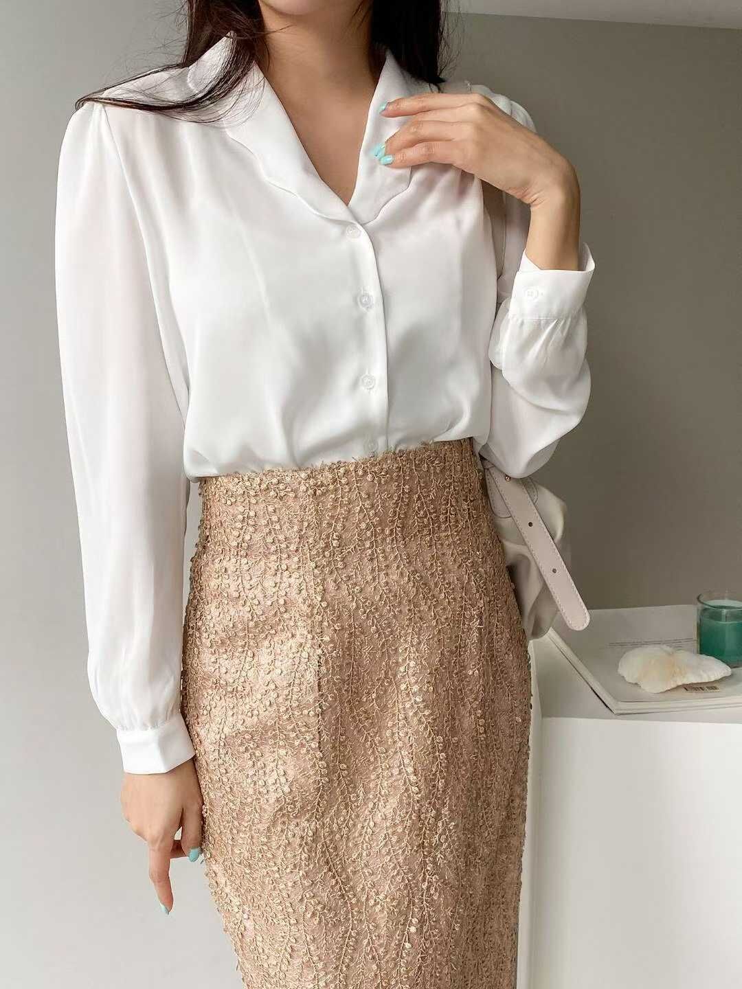 OPN "新品" Wavy Collar Shirt (White, Beige, Black)