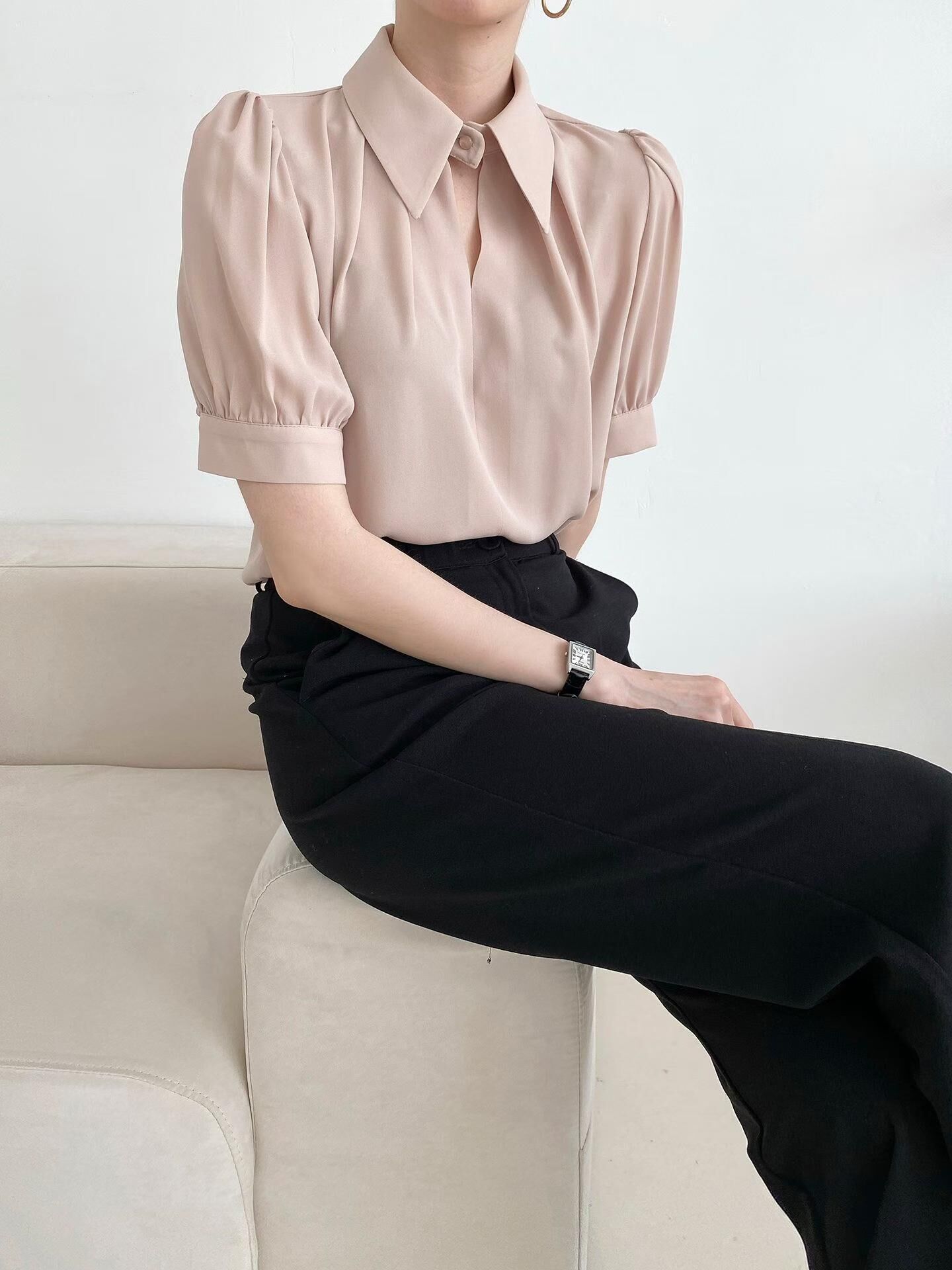OPN "新品" Pointed Collar Top (Beige, White, Black)